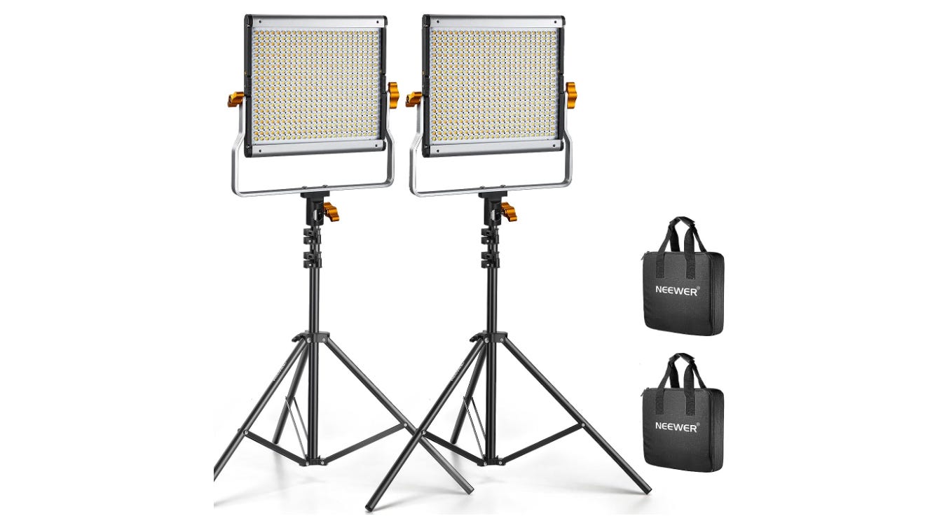 Neewer 2-pack dimmable bi-color LED video lights = $160